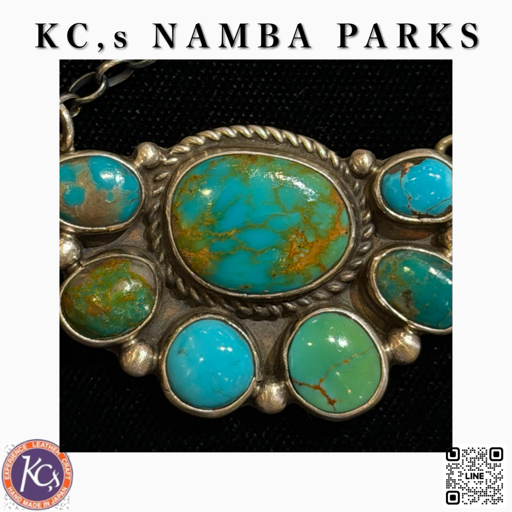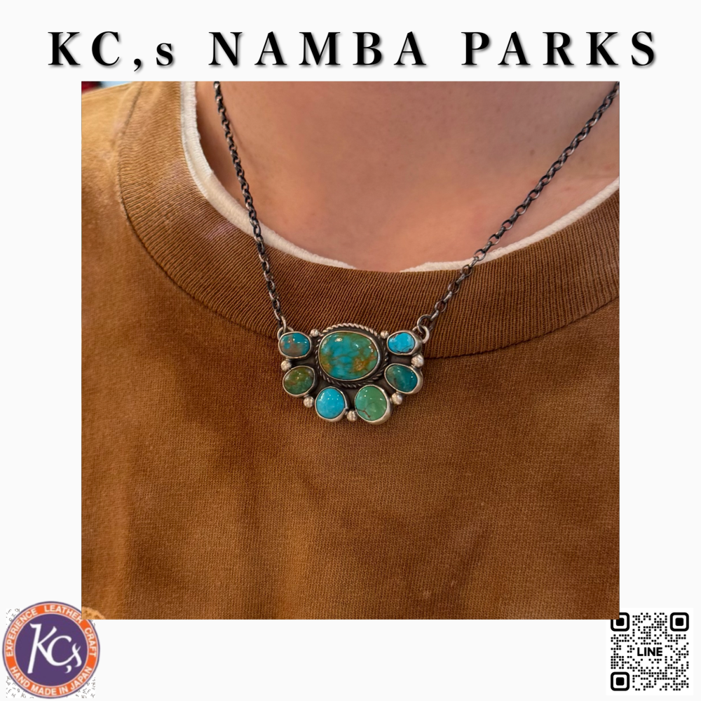 異なる色のキングマンターコイズが雰囲気を醸し出すネックレス。