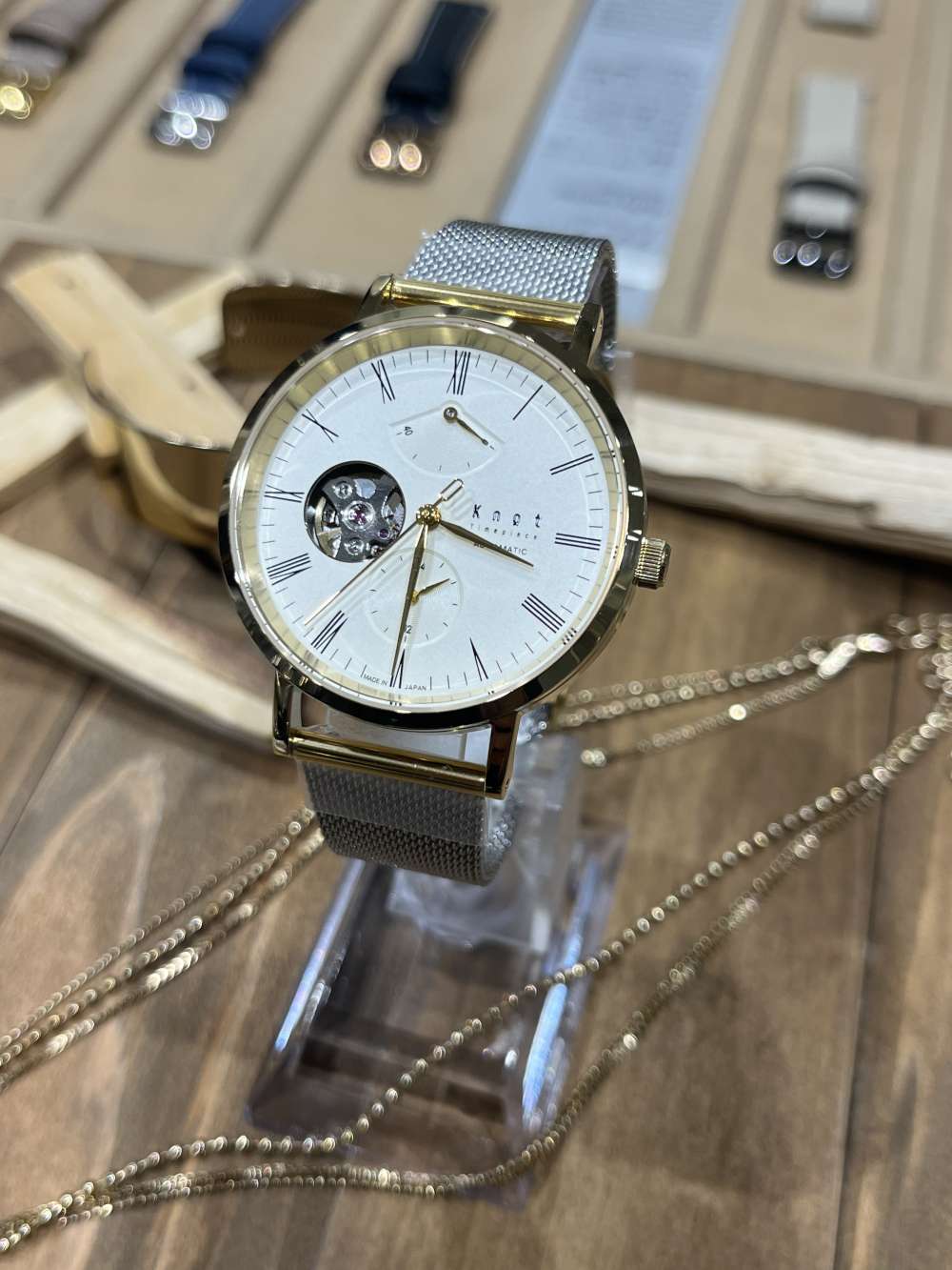 ステンレスメッシュストラップとの組み合わせも相性が良いです◎