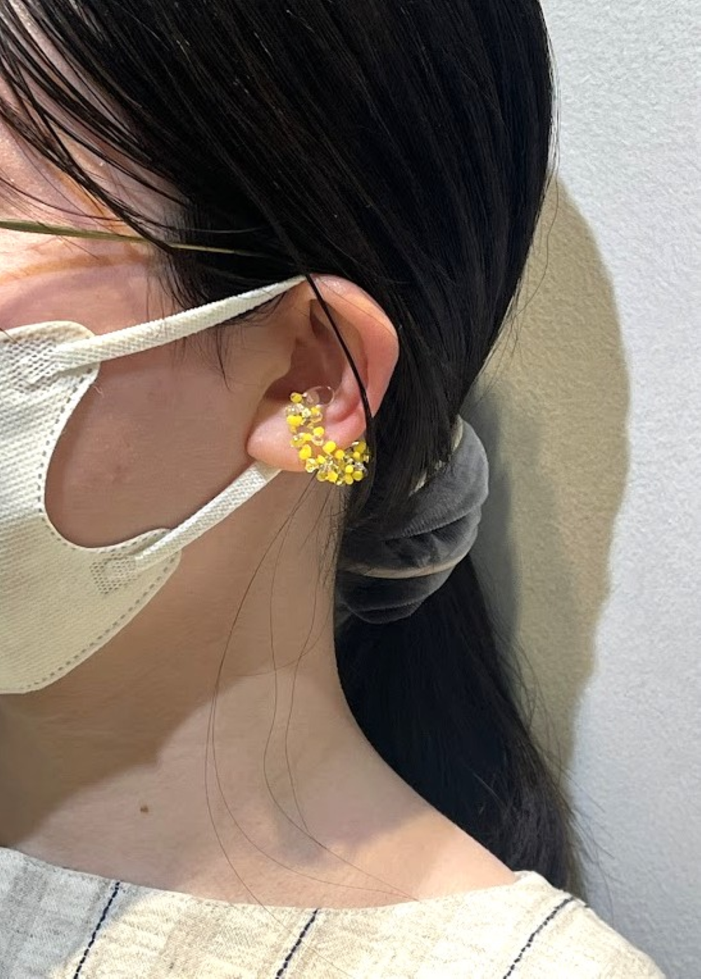 春らしいミモザカラーのつぶつぶイヤーカフや、抜け感のあるピアス/イヤリング。