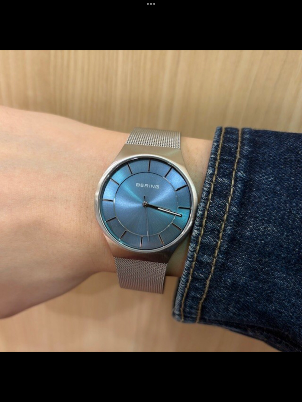 BERINGの多くのモデルに採用されているサファイアガラスのクリアな質感とアイスブルーの色調が、美麗なコントラストを生み出しブランドの世界観を堪能できるモデルです。
