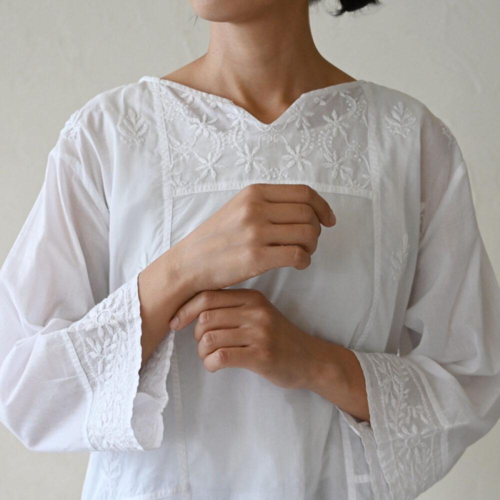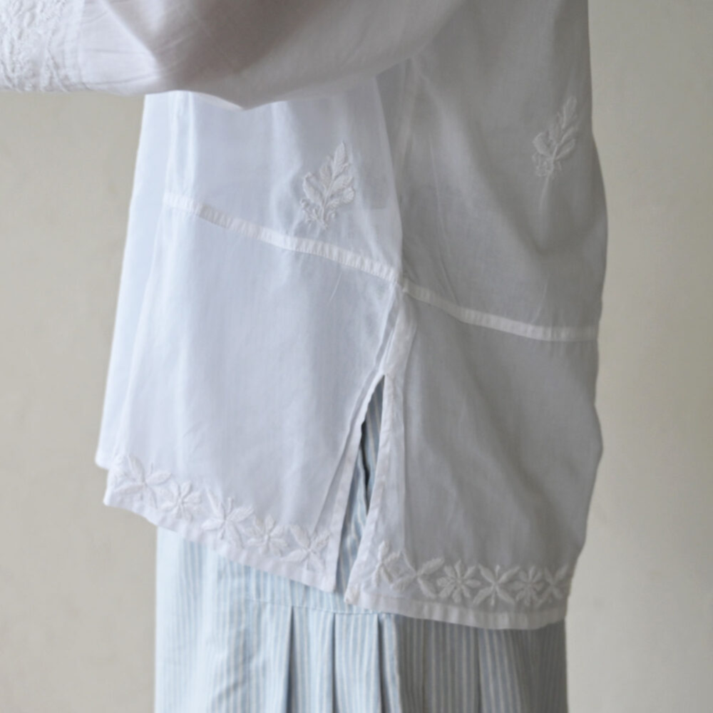 たっぷりの草花刺繍が散りばめられた、これからの季節にぴったりのトップス。