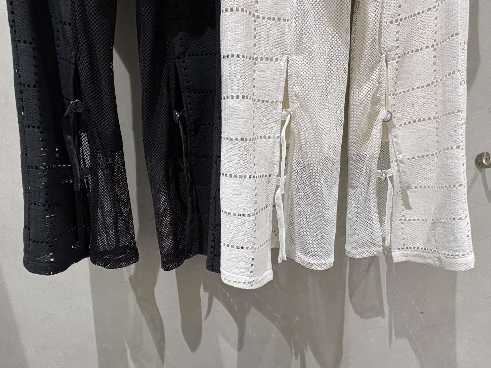 前中心は縦に、後ろ身頃と袖には横段に、メッシュの生地を切り替えてアクセントに。