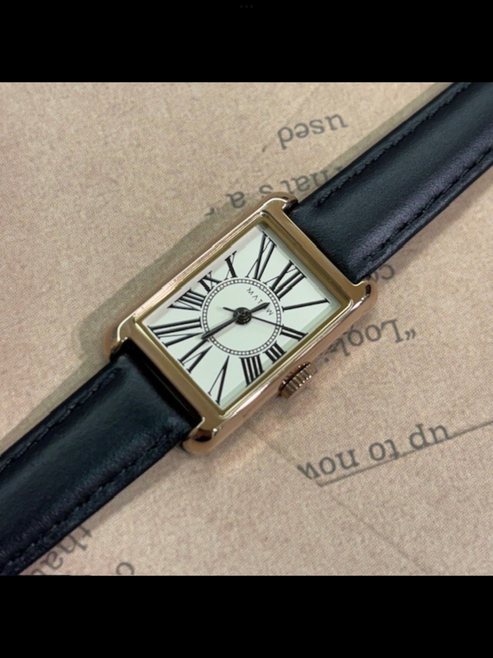 シンプルなフェイスに大きめローマ数字がアクセントになったモデル。