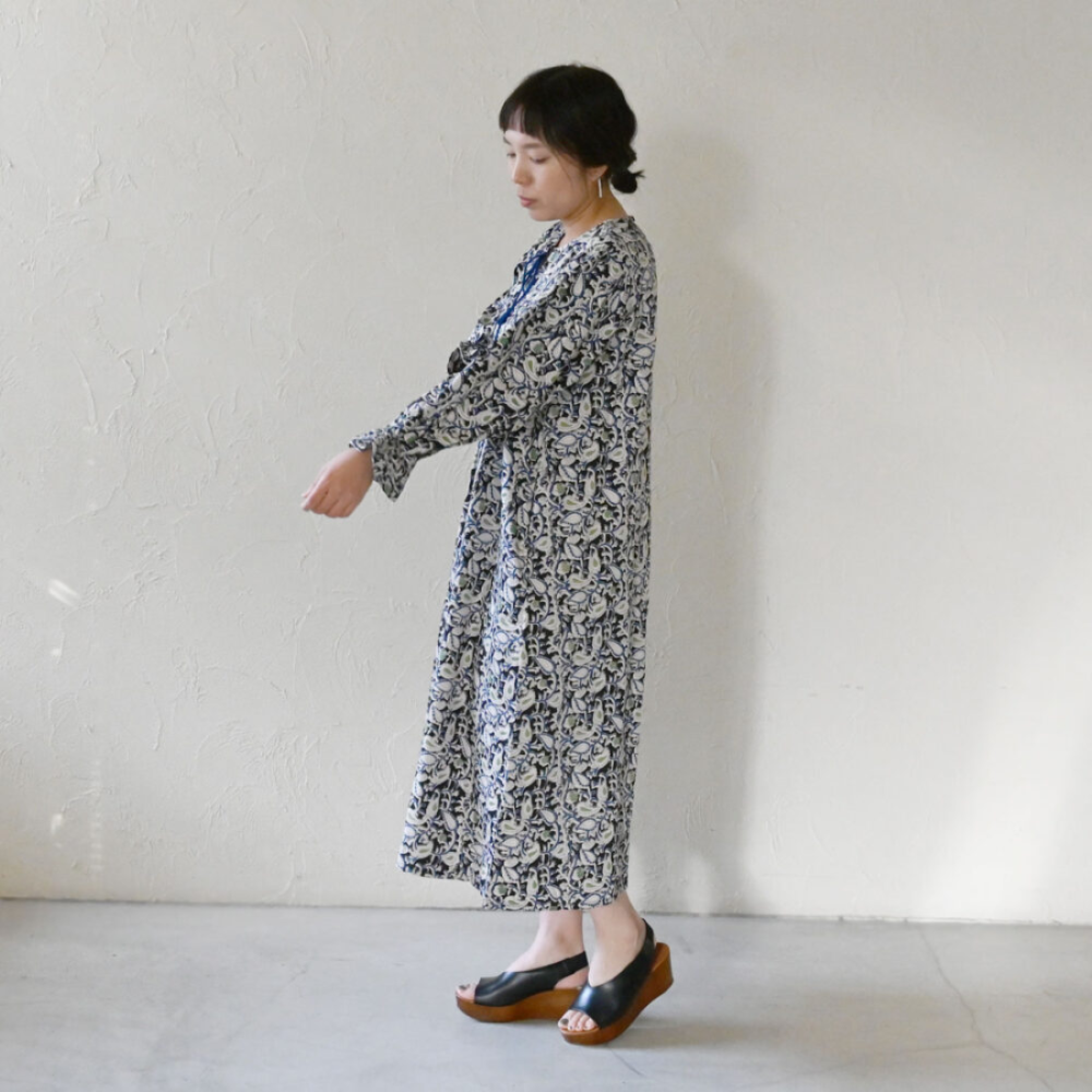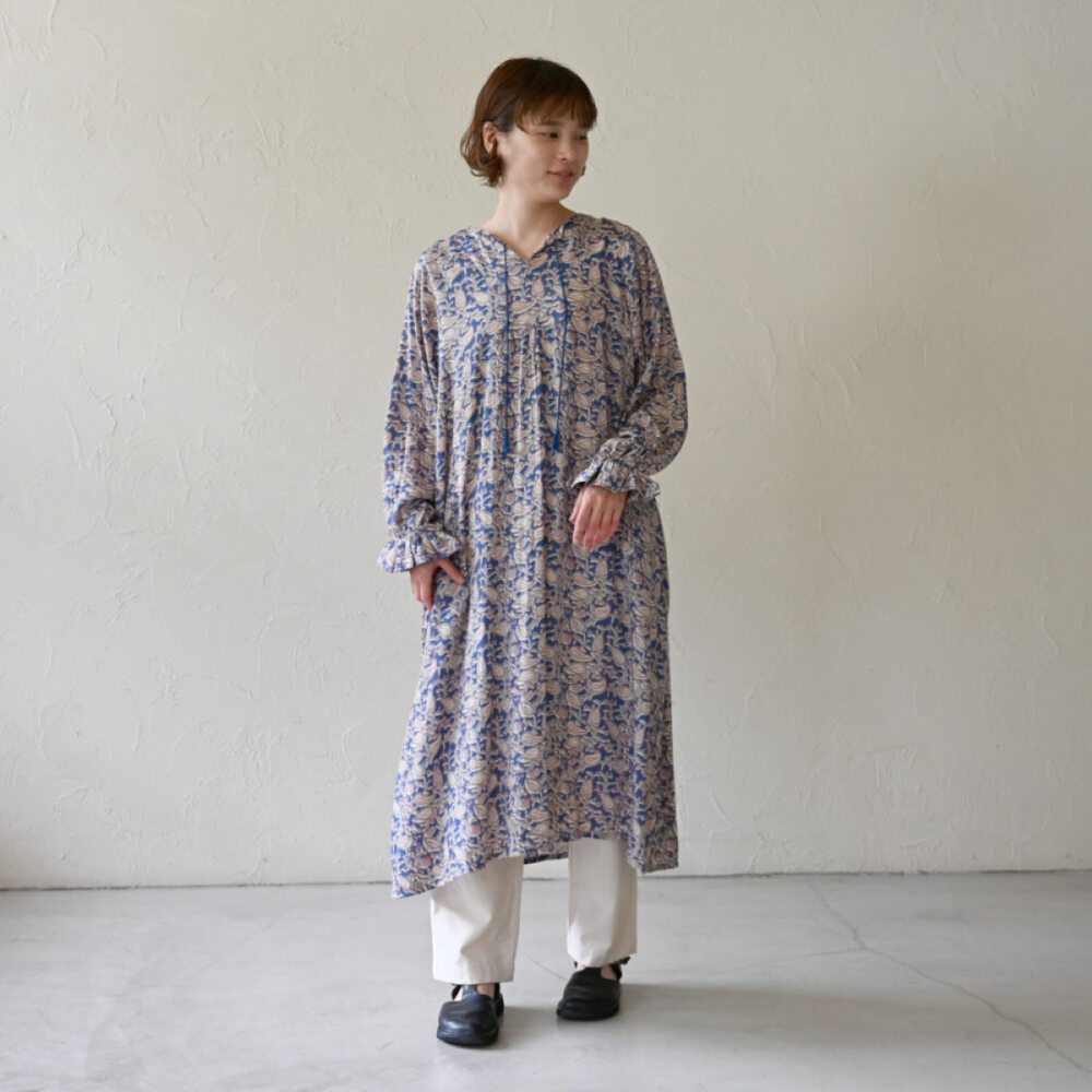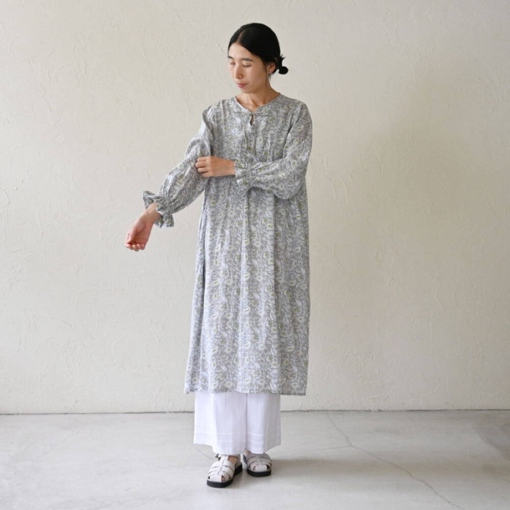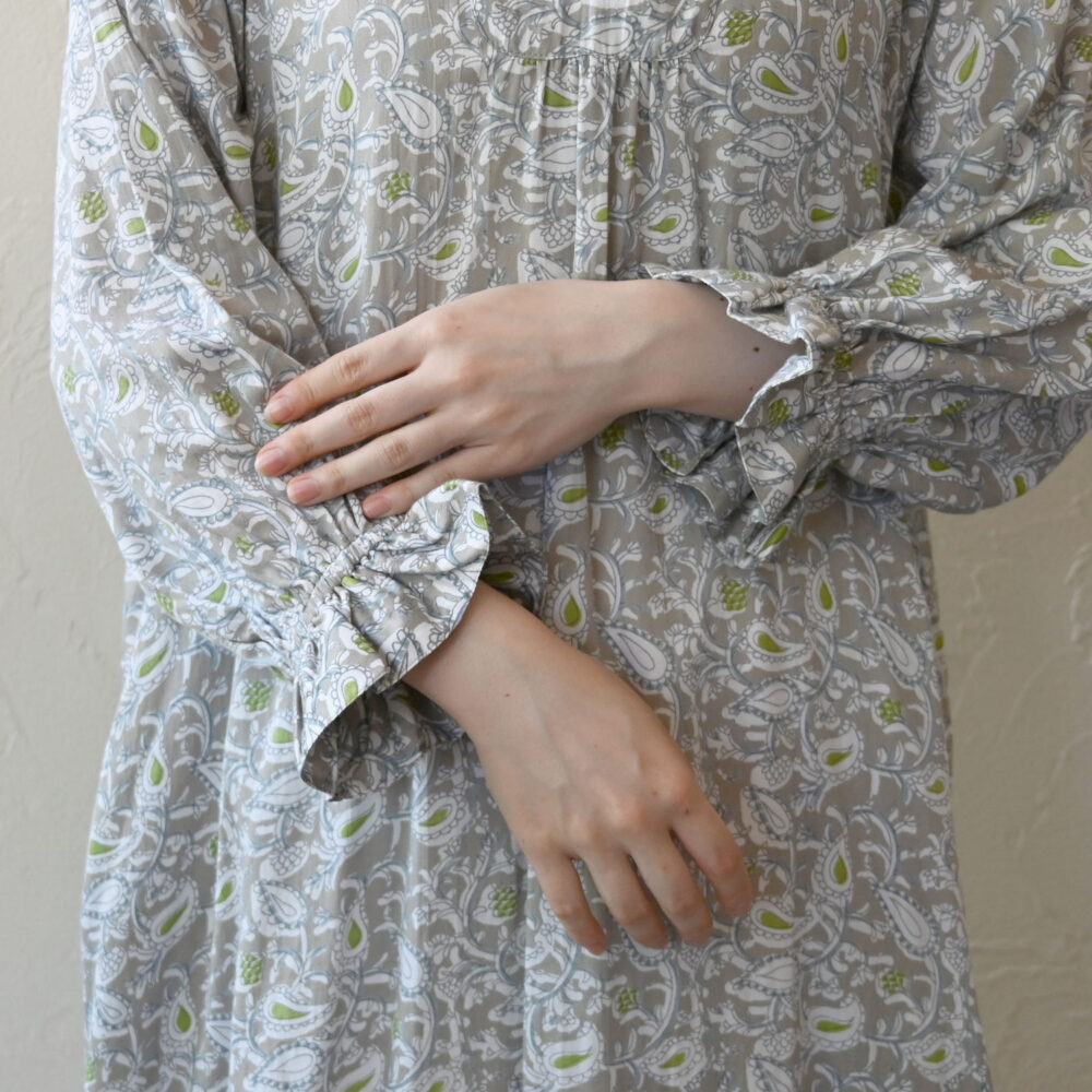 ボリューミーな袖が印象的なペイズリー柄のワンピース。