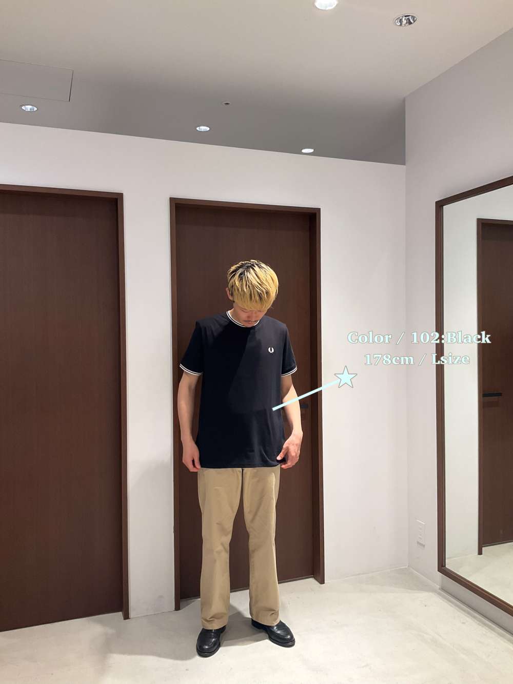 ネックと袖リブにフレッドペリーのシグニチャーであるティップラインを施したクルーネックTシャツ。
