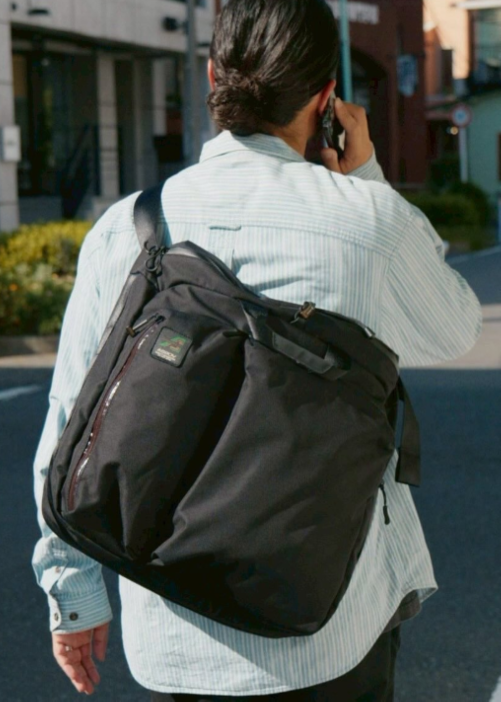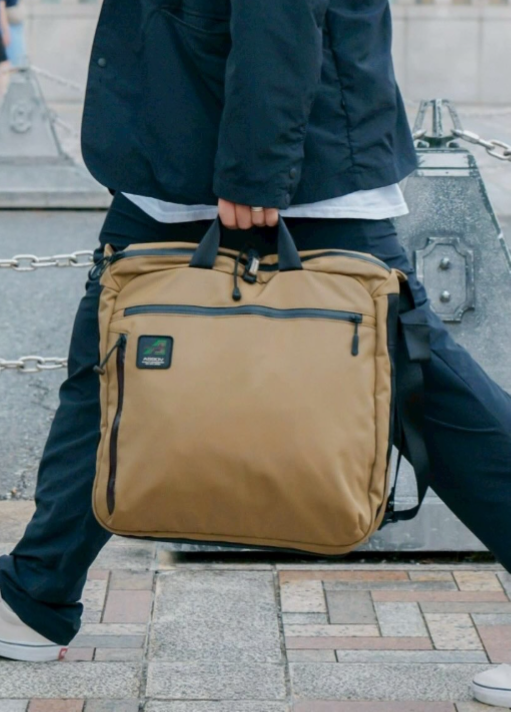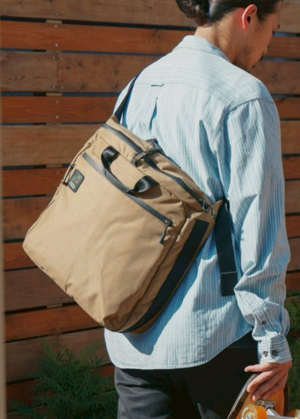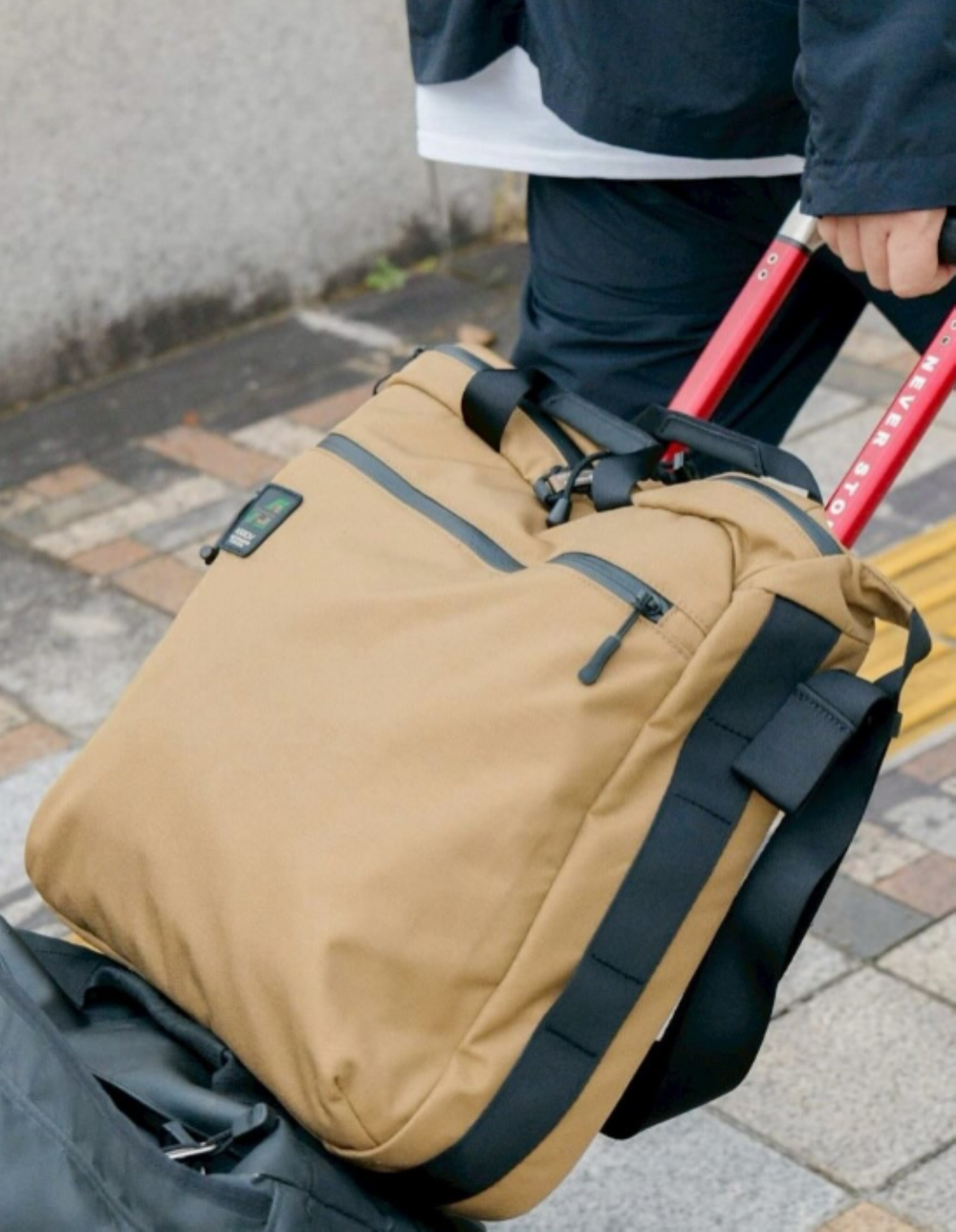 今回紹介するTOTE SHOULDERは52Lと29Lの2種類。共通するのはナイロン素材でありながらコットンライクな風合いが特徴の素材。FINE TEX®︎という防水コーティングすることで耐水圧8,500mmの高い耐水性を持つだけでなく軽さも魅力となっております。