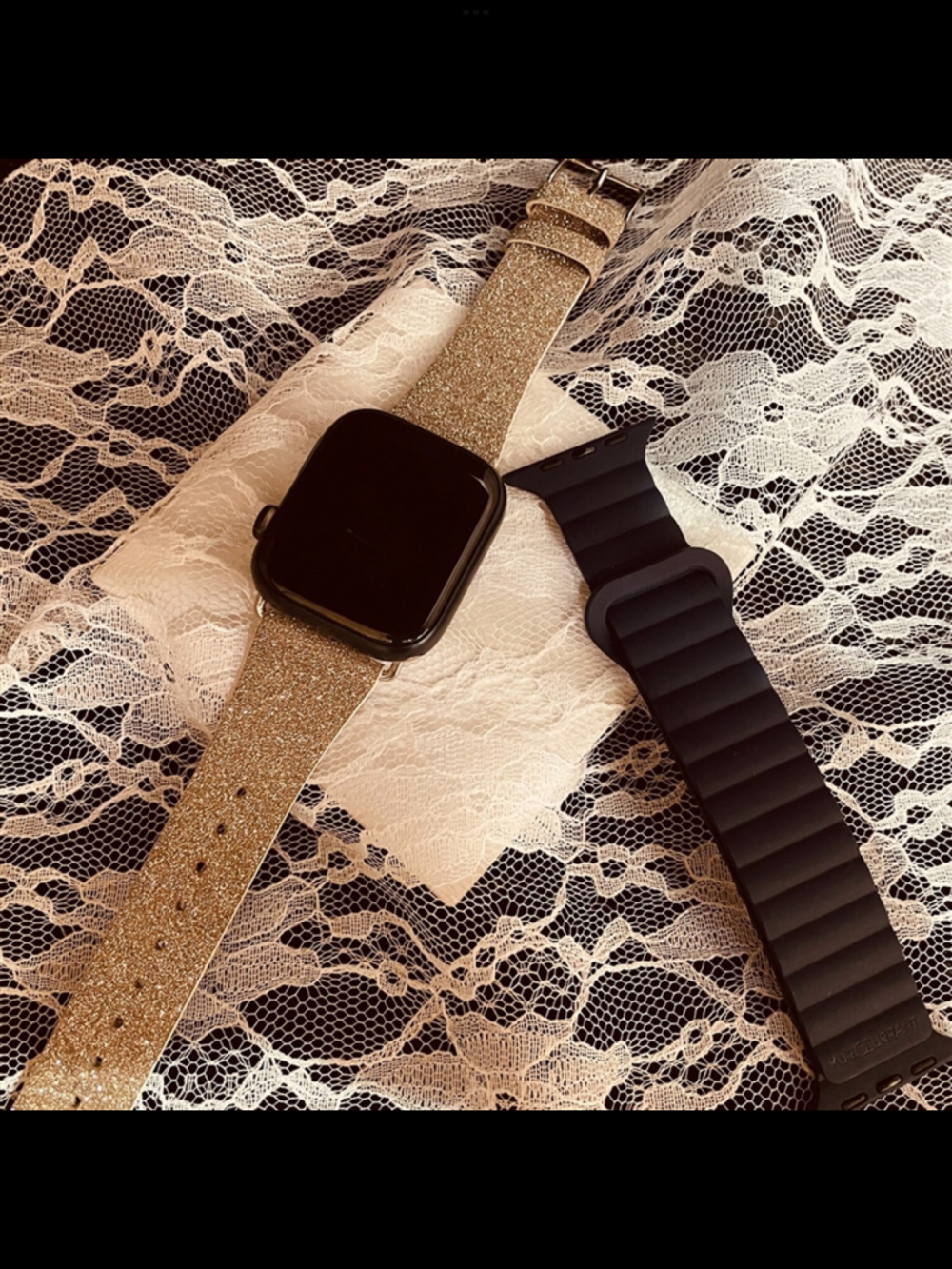 ▲こちらはラメが輝く スパークルベルト・マグネットで着脱がらくちんのマグネティックシリコンベルト